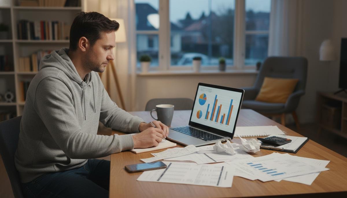 A falta de clareza sobre receitas totais e dívidas totaliza um erro comum, levando a gastos acima da renda. Solução prática: Registre ganhos (salário + bicos) e despesas por categoria, reserve para imprevistos e revise mensalmente; use ferramentas automáticas para insights.